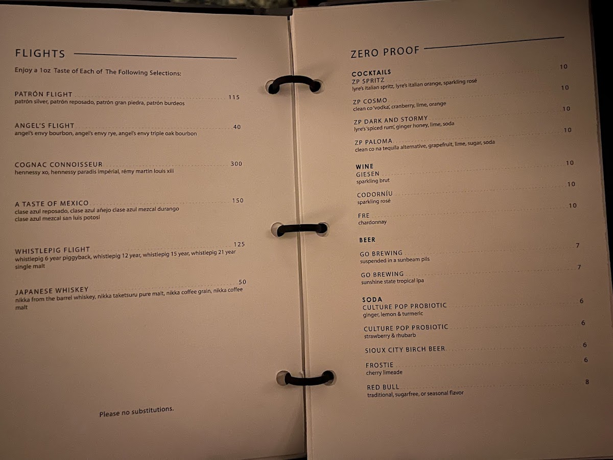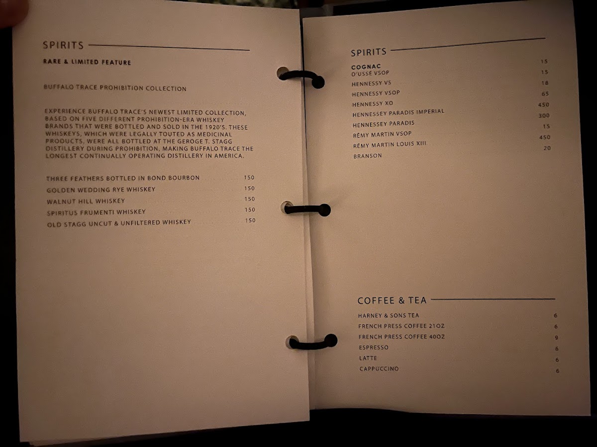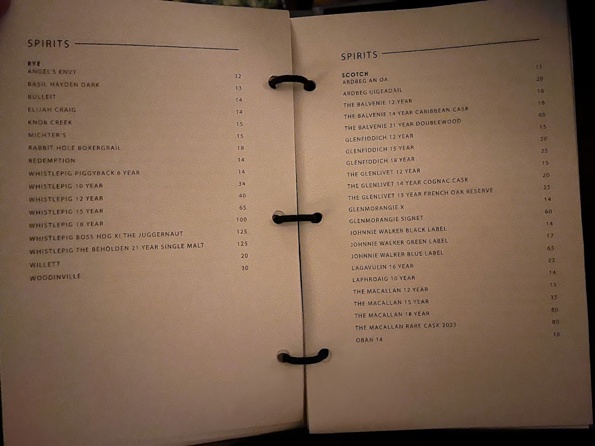 The menu is suited for both full dining experiences and occasion-based visits, accommodating those seeking appetizers, main dishes, desserts, or drinks. The structure allows guests to navigate through appetizers, mains, sides, desserts, and drinks, including an assortment of cocktails and spirits.