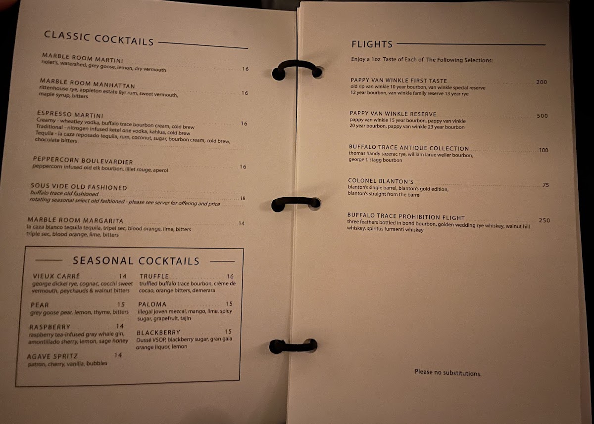 Marble Room Steaks and Raw Bar Menu